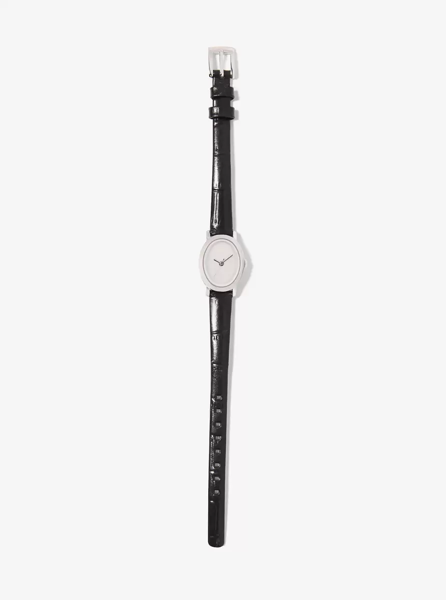 Stunning in its simplicity, the limited-edition Maude watch is reminiscent of a minimalist timepiece Michael’s grandmother sported. This petite stainless-steel design features a sleek, oval shaped dial that turns to reveal a unique identification number and features a crocodile-embossed leather strap for a textural twist. Neatly packaged in a box, it’s sure to be the perfect gift.