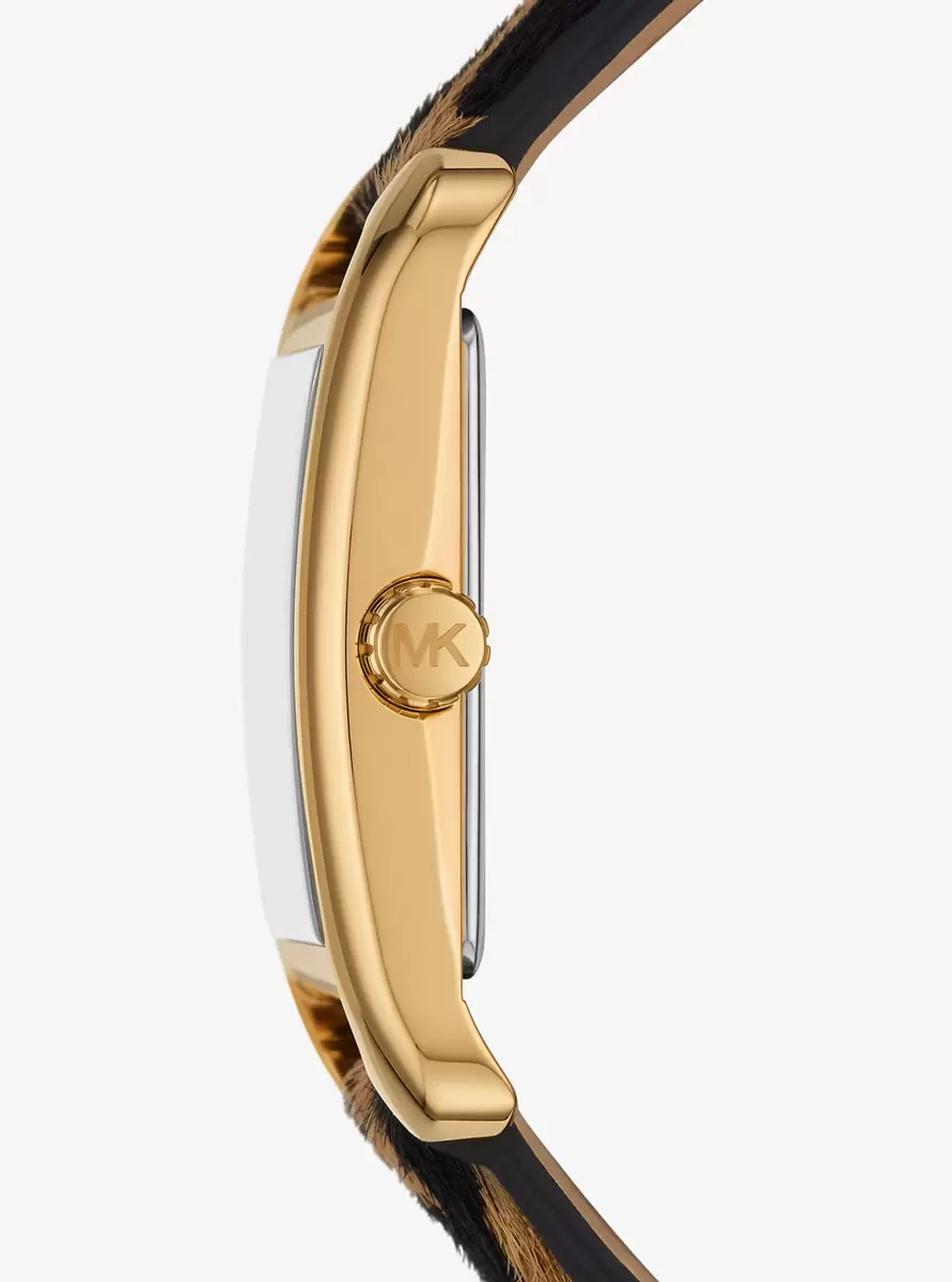 When it comes to timeless style, it doesn’t get more classic than our Monroe watch. The stainless-steel dial will look great with delicate bracelets and bangles that highlight its mid-sized style, while the leopard-print calf hair strap adds a wildly chic finish to any look. Create a wrist stack with more gold-tone shades to amplify its luxe feel.
