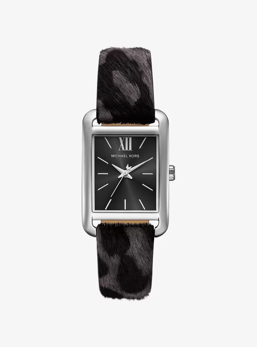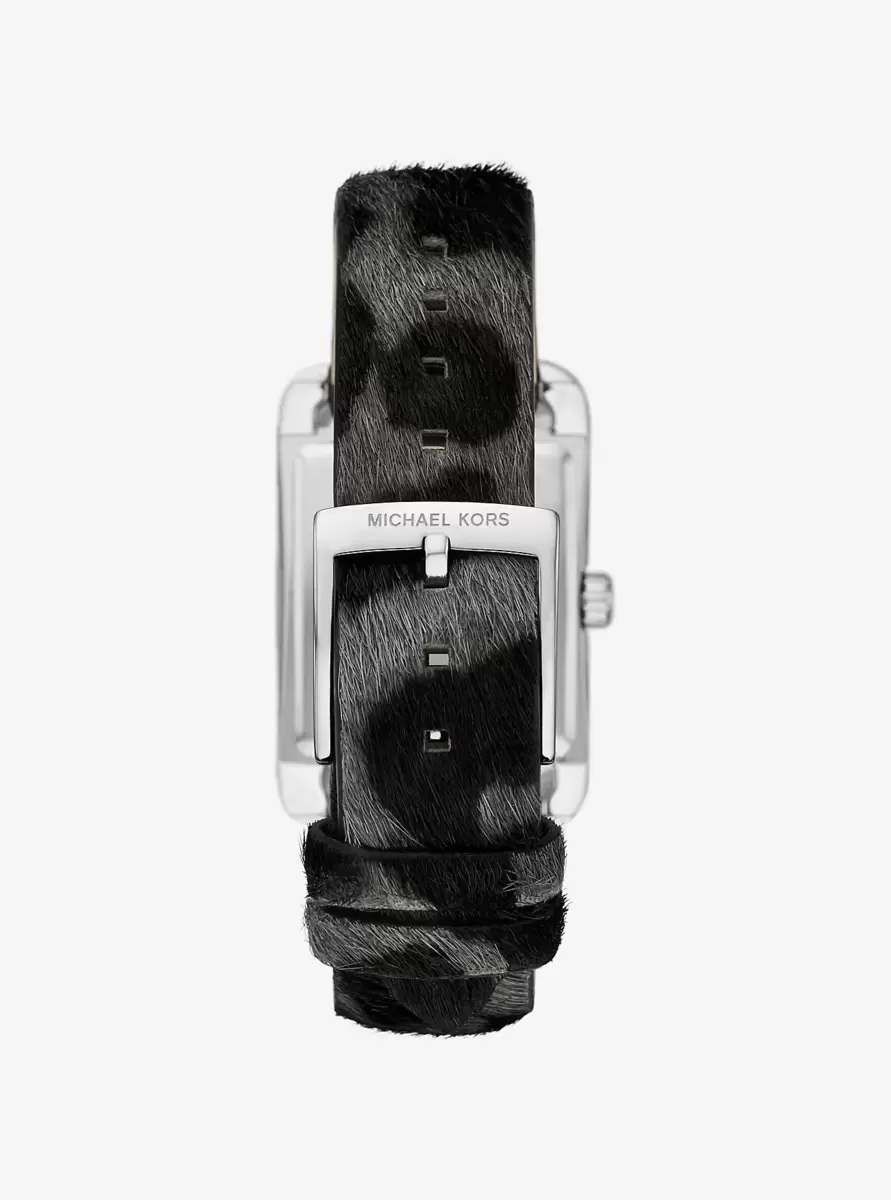 • Stainless steel/leopard print calf hair
