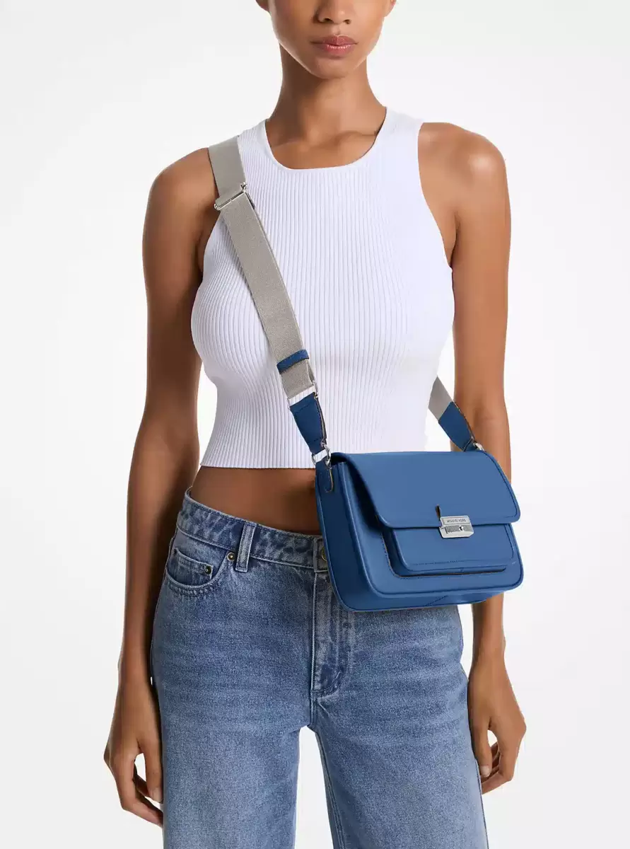 Our Bradshaw messenger bag effortlessly combines style with versatility. Designed in a fold-over silhouette, this style marries smooth leather with a woven strap for a sophisticated yet effortless look that’s ideal for everyday wear.