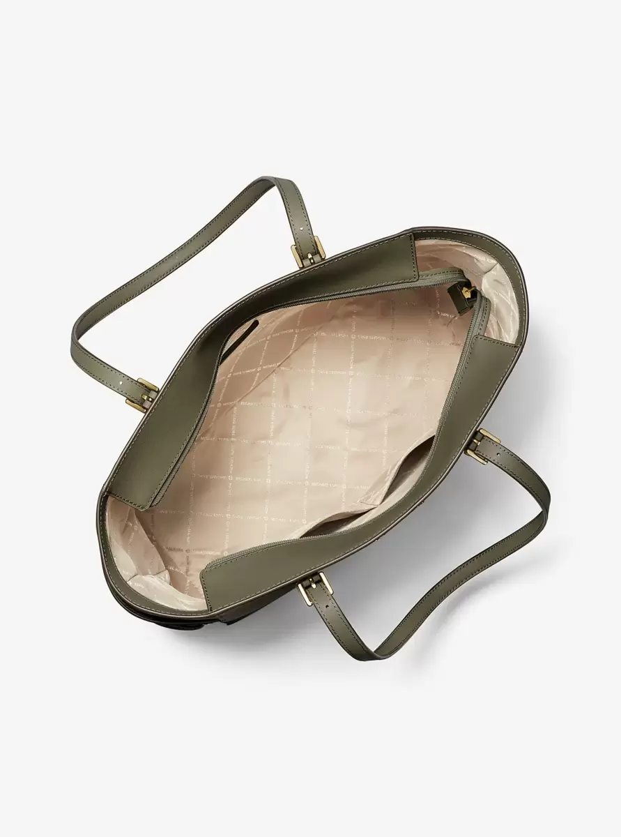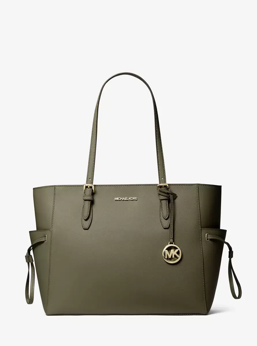 Meet the Gilly tote: an ultra-sleek carryall that redefines on-the-go style. Made from Saffiano leather, this bag opens to a pocketed interior sized to safely hold a laptop, spare shoes and other essentials. We love how the side panels can securely stow a compact umbrella and coffee tumbler.