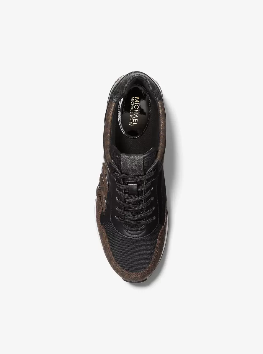 Our Maddy trainer is a sport-luxe style with a sophisticated touch. Designed in a classic silhouette, it features panels of Signature-print canvas with smooth and metallic accents . Keep this pair in focus with an all-white ensemble or cropped denim.