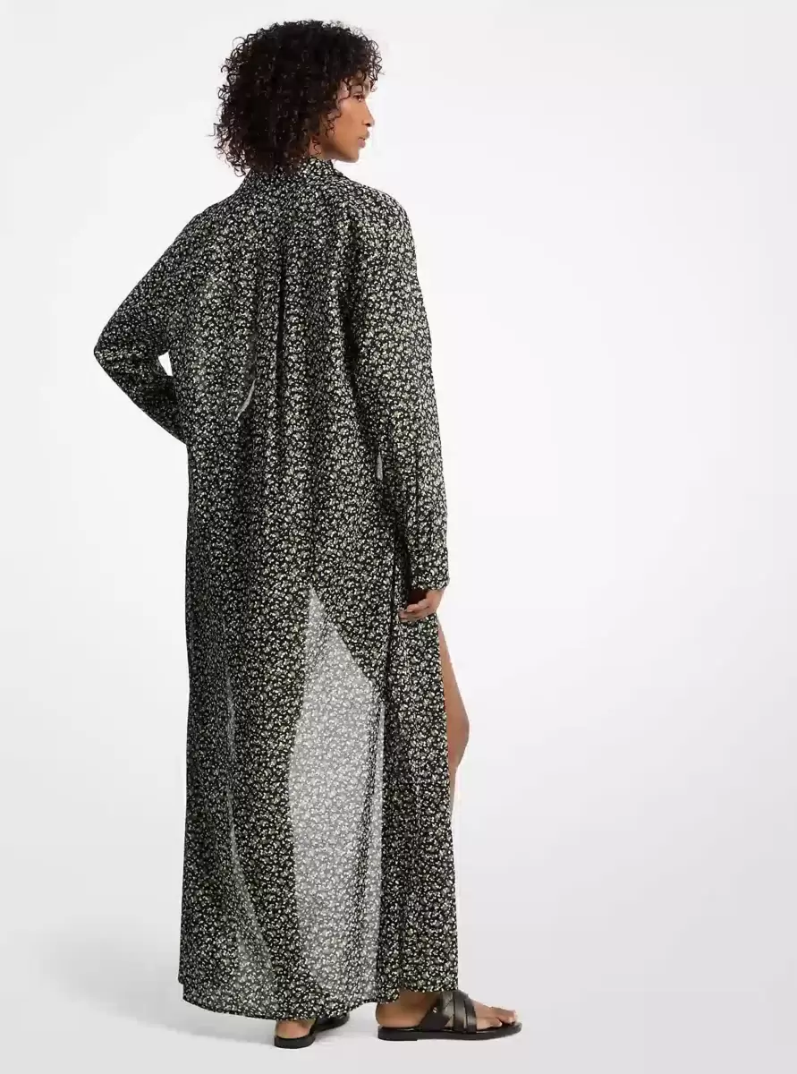 This shirtdress works equally well as a swimsuit coverup or day dress, ensuring it’ll save space in your suitcase. It’s made from lightweight cotton lawn printed with a floral motif in a loose fit that falls to a maxi length. Keep the bold motif in focus with minimal accessories.