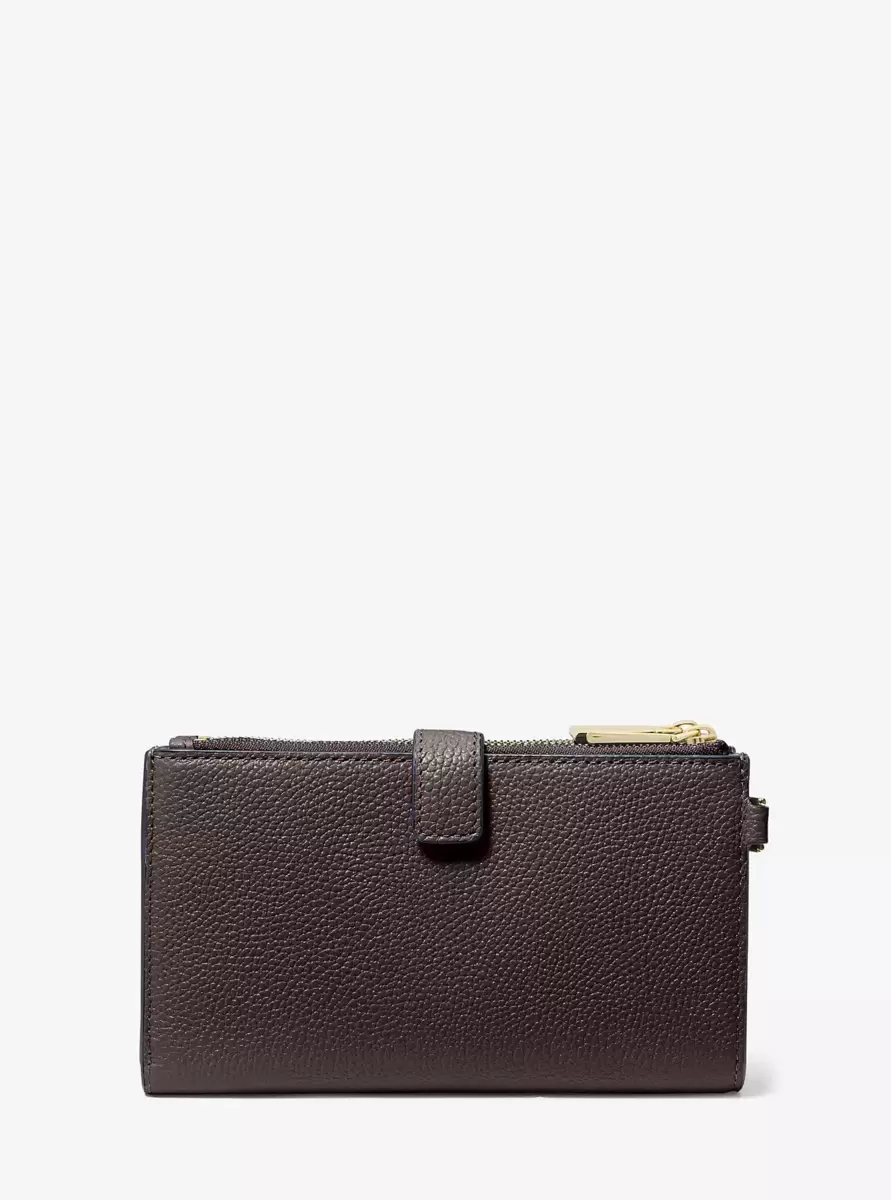 Done in a rich pebbled leather for timeless status, this sleek wallet has two zip sides that unfold to reveal a center with pockets for all the essentials, from credit cards to your smartphone. A wristlet strap perfects its versatility factor, so it can be carried alone or in a tote.