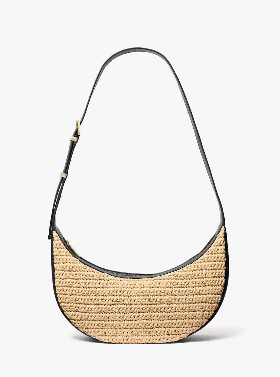 Our Avra bag just might be the chicest way to carry your daily essentials. It’s hand-crocheted in a crescent shape with leather panels and features a buckled strap that can be adjusted to your desired length. The slim profile makes it well suited for a number of occasions.