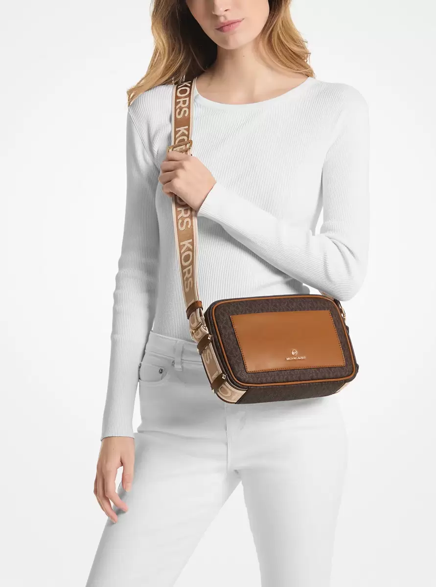 Equal parts casual and chic, our two-tone Maeve crossbody is a tribute to signature style. Featuring a logo tape strap for a sporty twist, it’s designed in a camera-inspired silhouette with polished pyramid studs for luxe appeal. We love how the multiple slip pockets offer easy organization on the go.