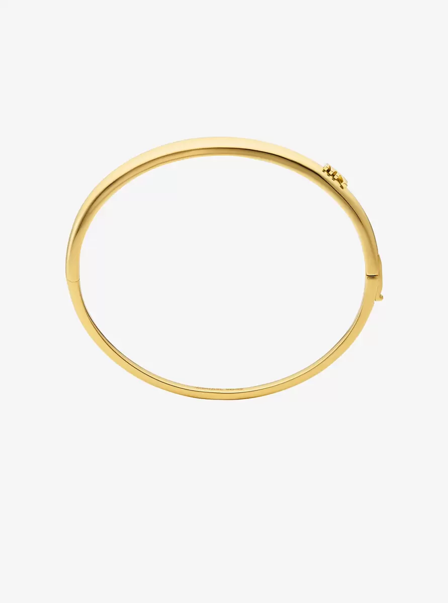 This glamorous take on the classic bangle is the perfect finishing touch to your wrist stack. A gold-tone finish and our iconic logo create a look that’s undeniably chic. Wear yours alone for a minimalist look, or with other pieces for an eye-catching statement.