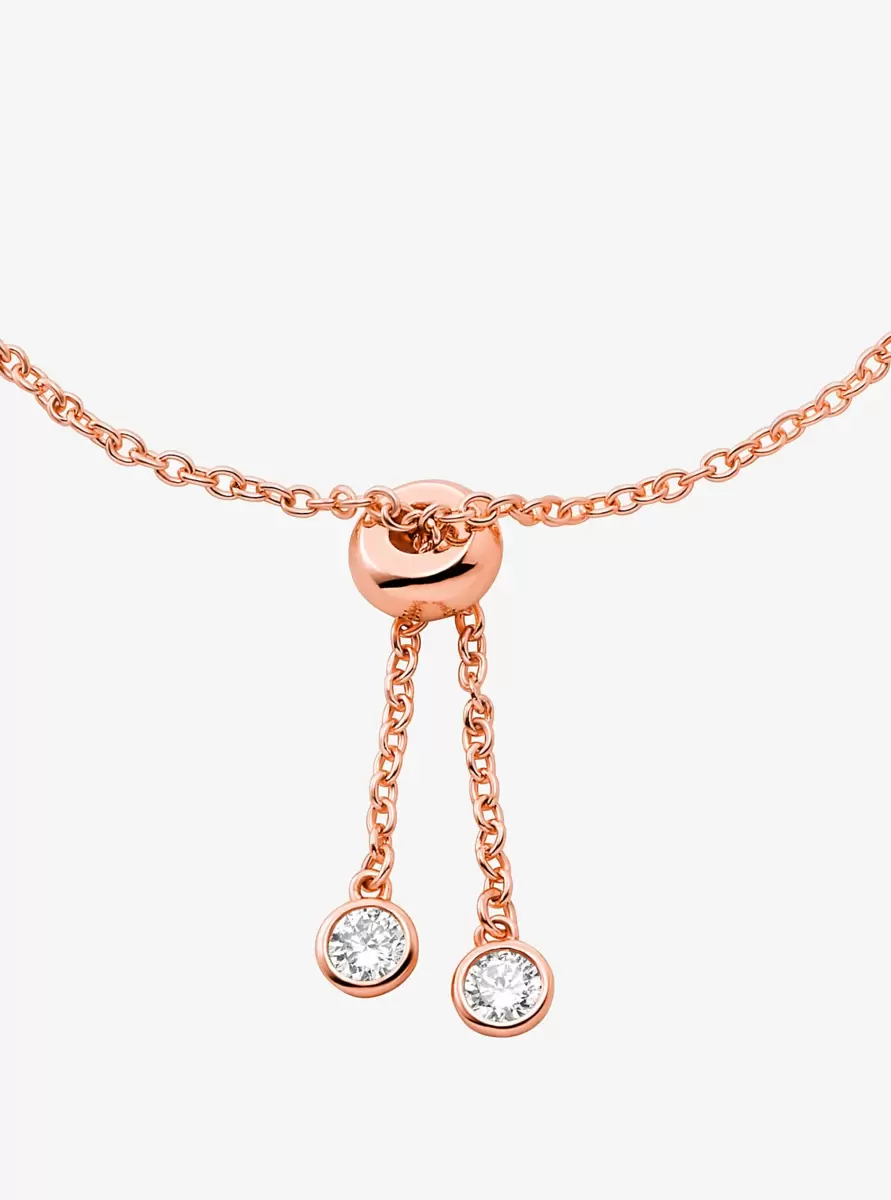 Count on this metal-plated sterling silver bracelet to add a luxe touch to every ensemble. Two delicate chains are set with dazzling cubic zirconia, while an effortless slider design allows you to take it on and off with ease whenever the occasion calls for extra sparkle.