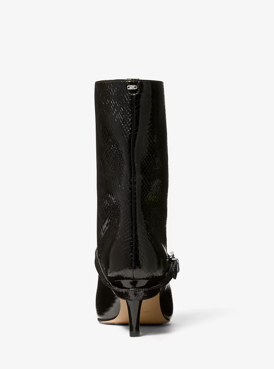 No other boot balances texture and shine quite like the Kasia. Crafted from snake-embossed leather, this sleek pair is defined by silver-tone hardware at the strap buckle and pointed toe. If you’re building an edit of chic wardrobe staples for the season, then add Kasia to your wish list.