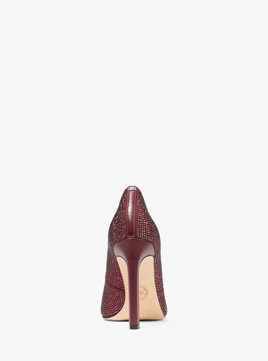 Set on a slim square heel and finished with a pointed toe, the Amara pump offers a leg-lengthening silhouette to dresses and trousers alike. Glittering studs finish it with light-reflecting shimmer for a pop of glamour.