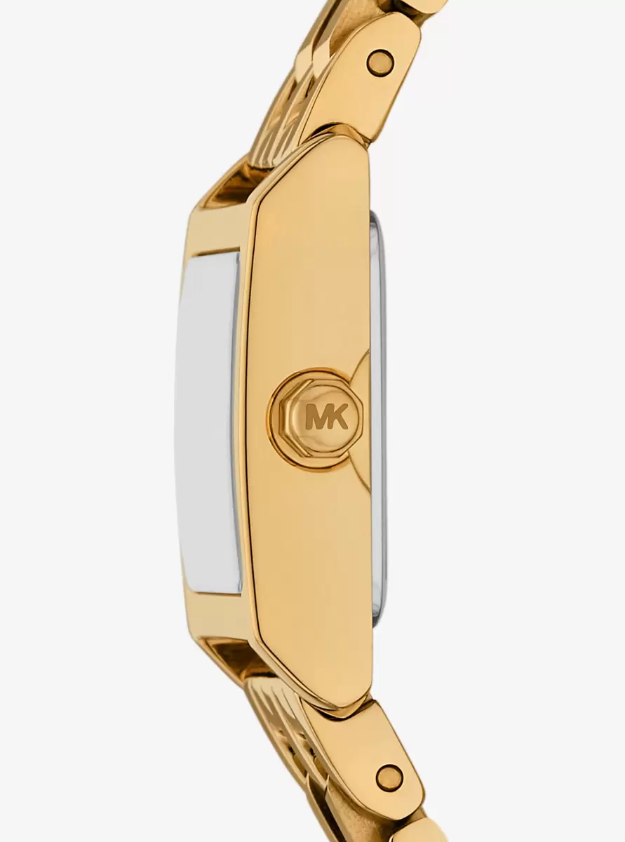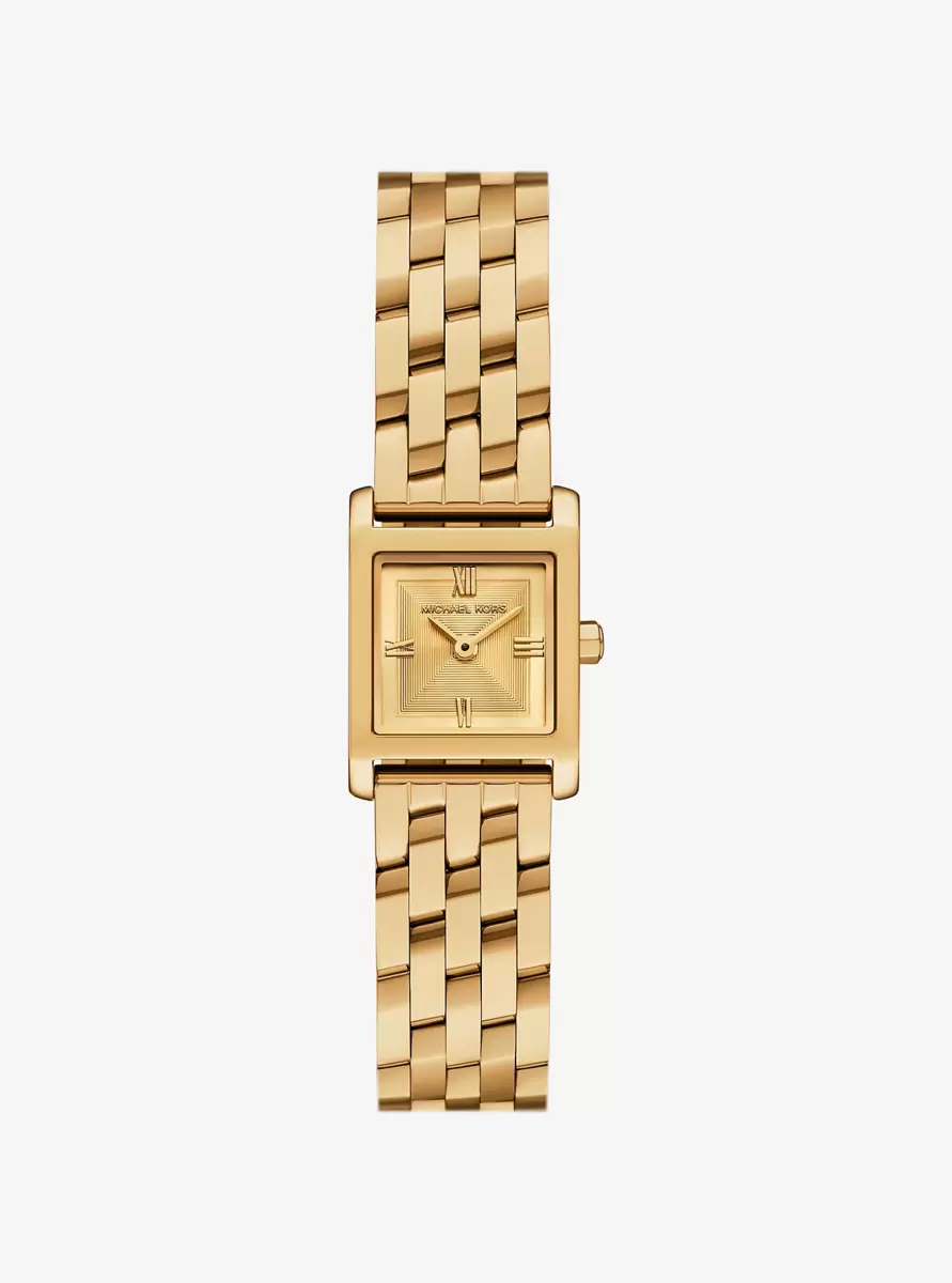 This micro watch is the smallest style in our beloved Georgie collection, featuring a sophisticated square silhouette and textured dial. Crafted from gold-tone stainless steel with a classic link bracelet, this delicate timepiece offers understated luxury, perfect for everyday looks and special occasions alike.