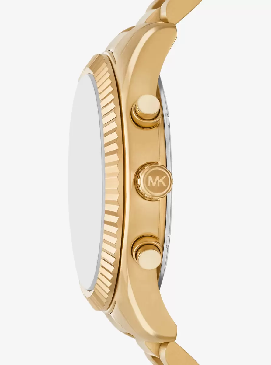 Our Lexington watch takes sleek and streamlined style to another level. The beveled gold-tone stainless steel bezel, bracelet strap, and chronograph dials feel at once timeless and thoroughly modern. Meanwhile, a slim, crocodile-embossed leather card case keeps your most-used cards close at hand. Together, the two essentials make for a gift he’ll treasure for years to come.